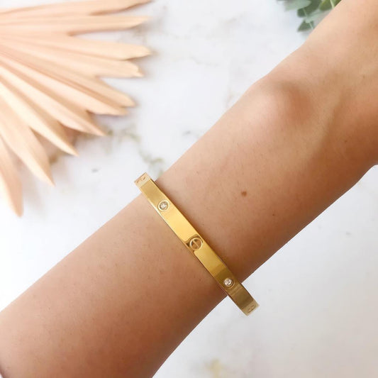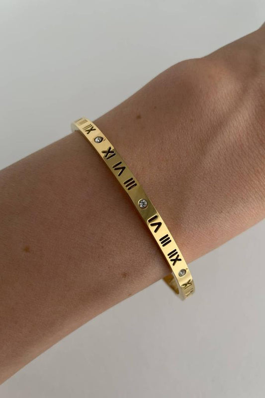 Roma Rakam İnce Taşlı Altın Çelik Bileklik