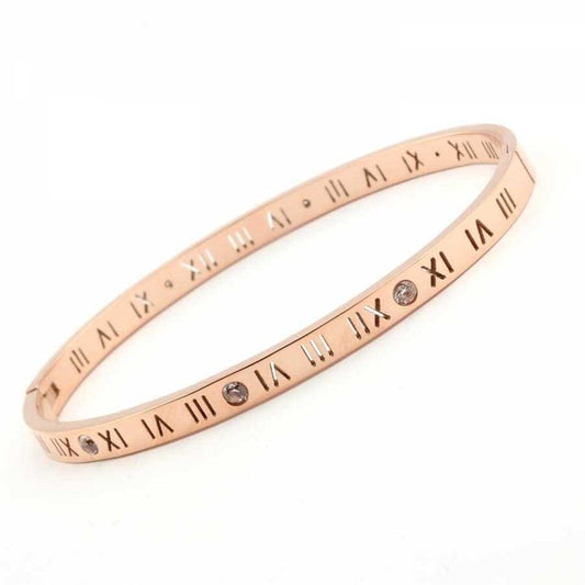 Roma Rakam Ince Taşlı Rose Çelik Bileklik