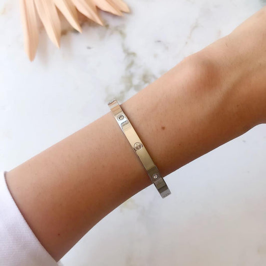 Roma Rakam İnce Taşlı Gümüş Çelik Bileklik