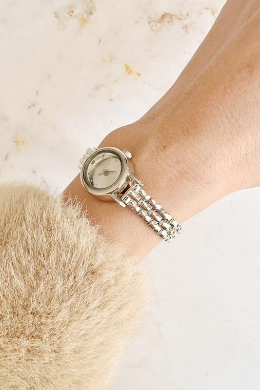 Rose Silver Women's Wristwatch with Roman Numeral Case Detail