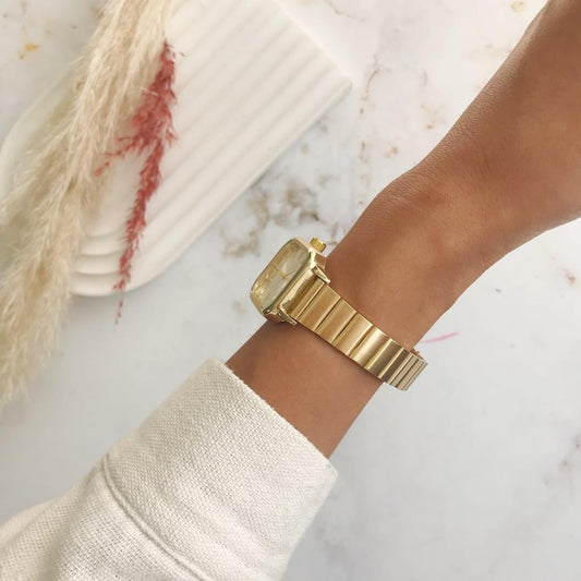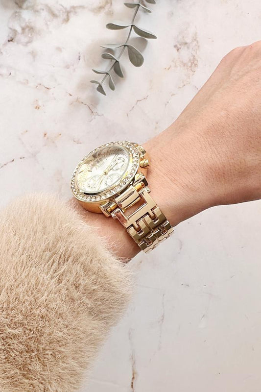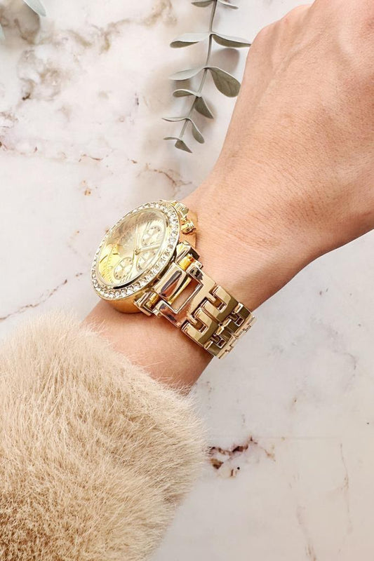 Kadran Tasarımlı Metal Full Altın Kadın Kol Saati