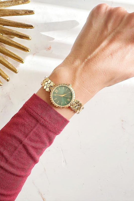 Hera Gold Petek Kordon Yeşil Kadran Kadın Kol Saati