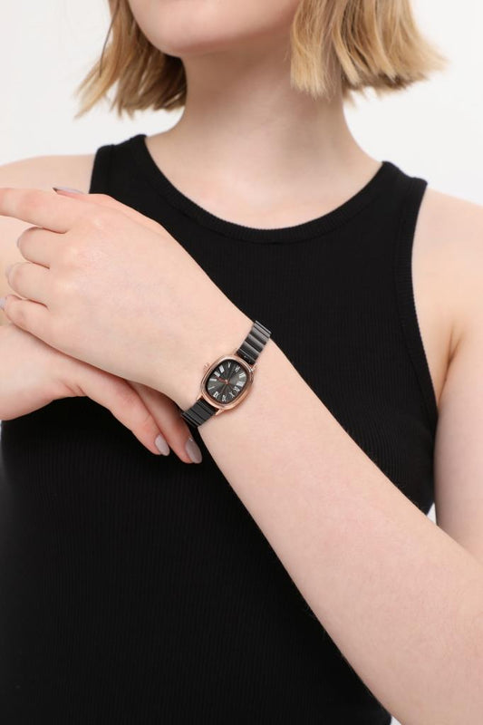 Lilith Roman Numeral Black Dial Rose Case Women's Wristwatch