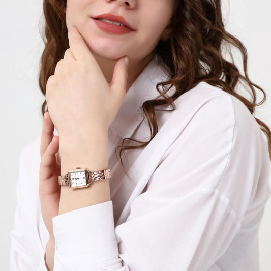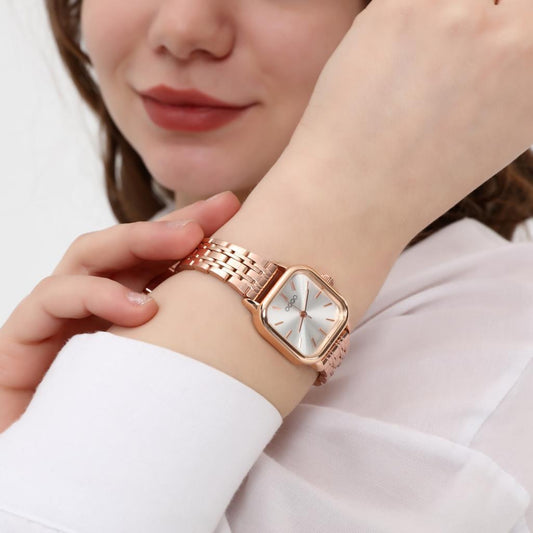 Maiar Square Case Rose Silver Strap Women's Wristwatch