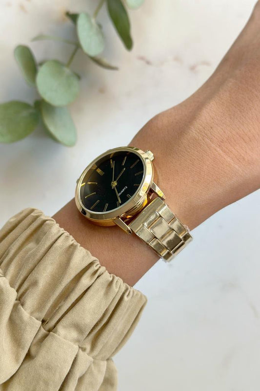 Tirol Black Dial Gold Strap Women's Wristwatch