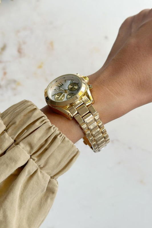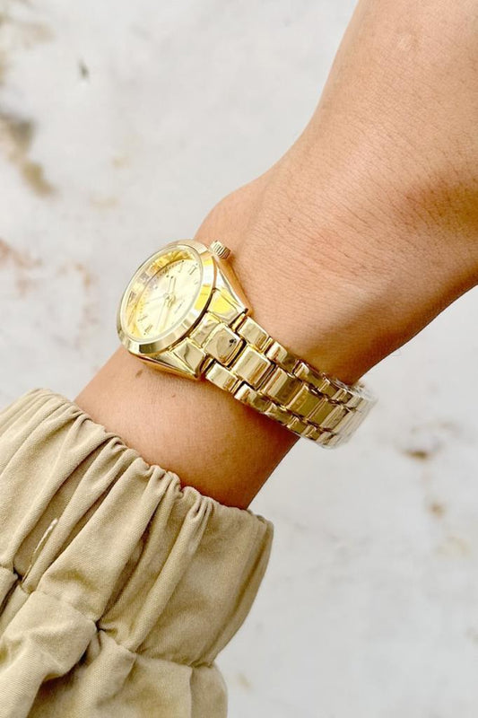 White Dial Gold Women's Wristwatch with Roman Numeral Case Detail