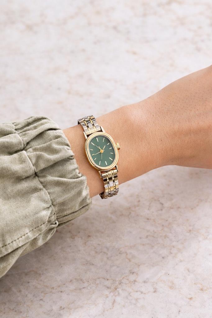 Nera Yeşil Kadran Gold Gümüş Kordon Kadın Kol Saati