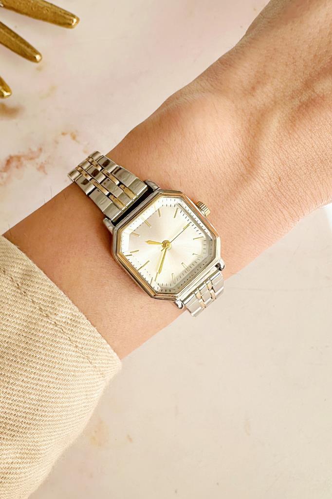 Thane Köşeli Kadran Gold Gümüş Kordon Kadın Kol Saati