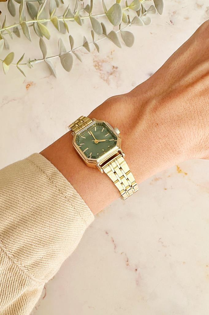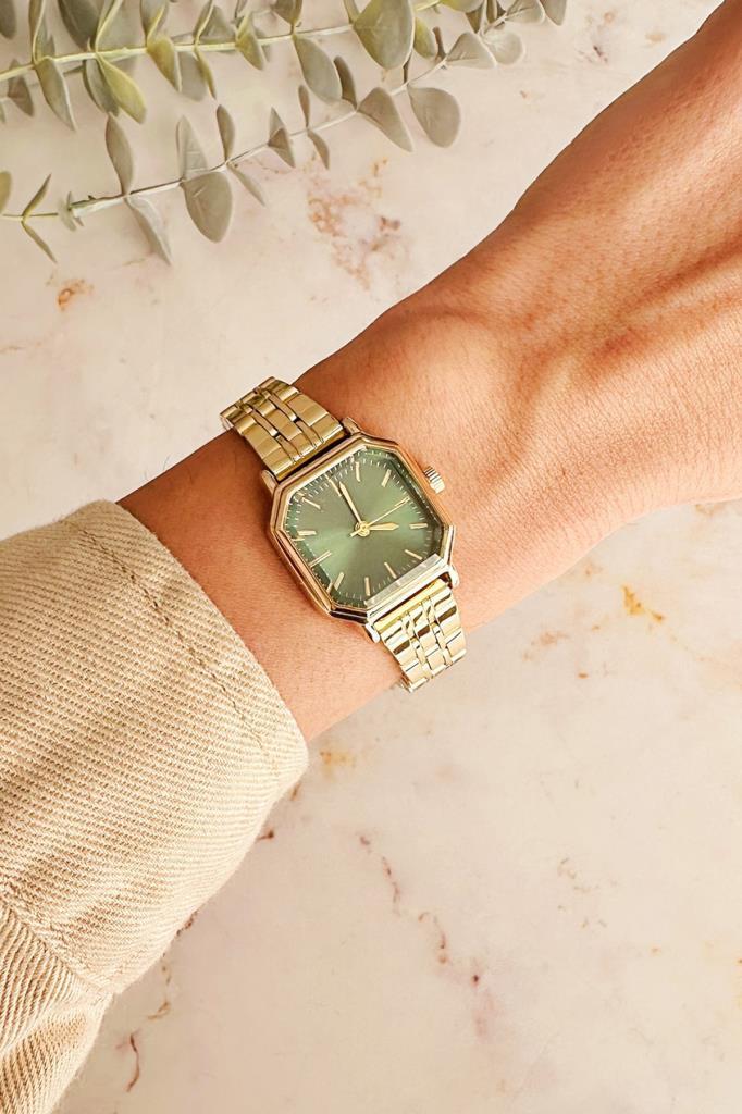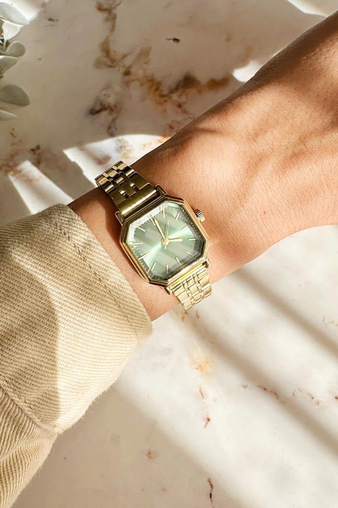 Thane Köşeli Yeşil Kadran Gold Kadın Kol Saati
